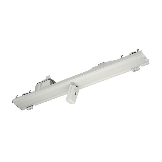LicrossSensor-Module HE1-S, Slave, zentrale Steuerung - Anbindung an Licht- oder Gebäudemanagement, lokale Steuerung - autarke standalone Sensorik, dimmbar, Montageort: an der Licross Tragschiene, aus Stahlblech, Schutzart (gesamt): IP20, Schutzklasse (gesamt): SK I (Schutzerdung), Prüfzeichen: CE, UKCA, Spannung: 230V, Spannungsart: AC, 1 x HF-Bewegungssensor, 1 x Lichtsensor-Eingang, 1 x DALI-2