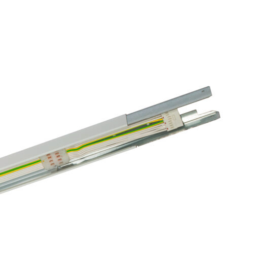 Modario IP64, Tragschiene, aus Stahlblech, verzinkt, lackiert, leuchtenweiß, 1längig, Länge: 1.495 mm, Breite: 58 mm, Höhe: 43mm, Durchverdrahtung: 10x 2,5mm², mit Klemme, 10polig, max. 2,5mm², Schutzart (gesamt): für Schutzart IP64, Schutzklasse (gesamt): SK I (Schutzerdung), Prüfzeichen: CE, ENEC, VDE, Norm: EN 60598