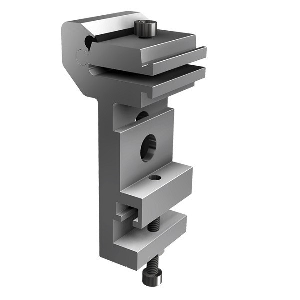 Fassadenbefestiger, ermöglicht die Befestigung des SL Fassadensystems an der Wand, Montage mit Stockschraube, nach oben und unten montierbar, Profilausrichtung auf den Millimeter möglich, gewährleistet eine Hinterlüftung von 6 cm, verschwindet hinter den Modulen, Material: Aluminium (Befestiger), Edelstahl (Schrauben)
