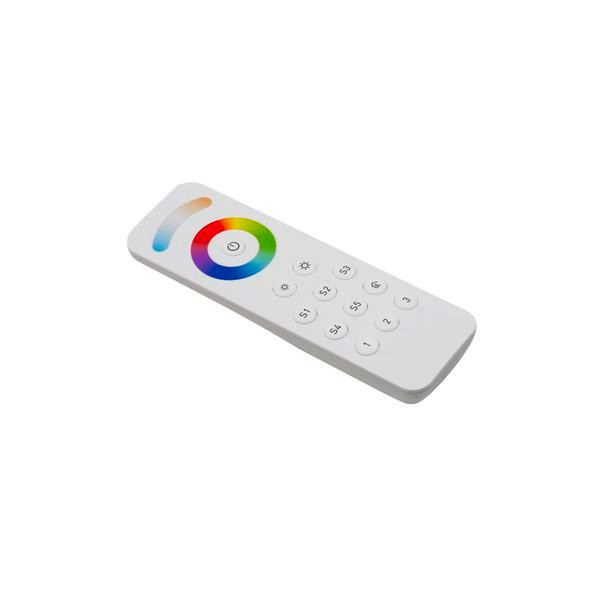 Mit ihrem stabilen Touch-Farbrad ermöglicht die stromsparende ZigBee CCT/RGBW Fernbedienung eine schnelle und präzise Farbsteuerung über bis zu 30 m hinweg. Dank des „Find-and-Bind-Modus“ lässt sie sich einfach mit universellen ZigBee DIM-, CCT-, RGB-, RGBW- und RGB+CCT-ZigBee-Gateway-Produkten koppeln. Dabei werden drei Gruppen zur Anbindung von maximal 30 Beleuchtungsgeräten und sechs voreingestellte Szenen unterstützt. Zusätzlich sind das Speichern und Abrufen von fünf Szenen möglich.
