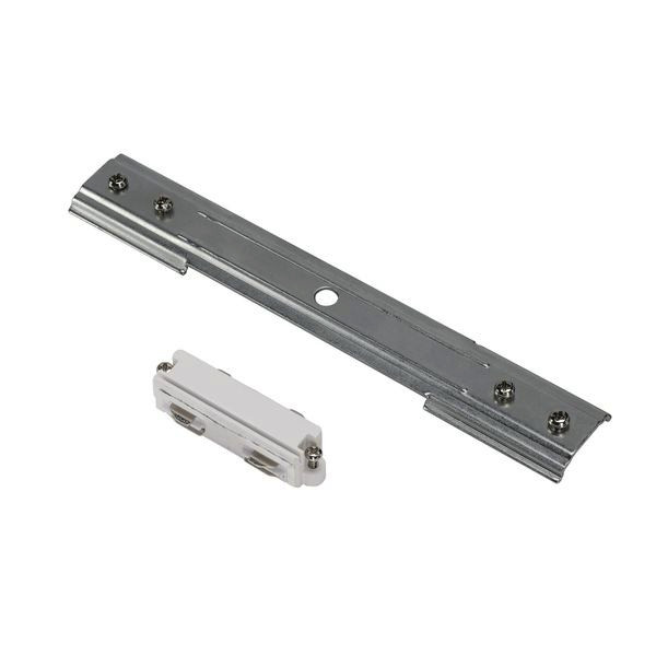 Starrer Längsverbinder für das Hochvolt 1Phasen-Einbauschienen-Systems. Ein Stabilisator zur rückseitigen Montage auf der Schiene ist im Lieferumfang enthalten.