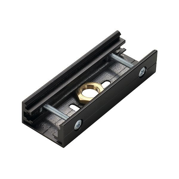Mechanischer Stoßstellenverbinder für das Hochvolt 3Phasen-Aufbauschienen-System. Der in mehreren Farbversionen erhältliche Verbinder verfügt über ein M13 Innengewinde zur Aufnahme der Seil-. bzw. Pendelabhängung.