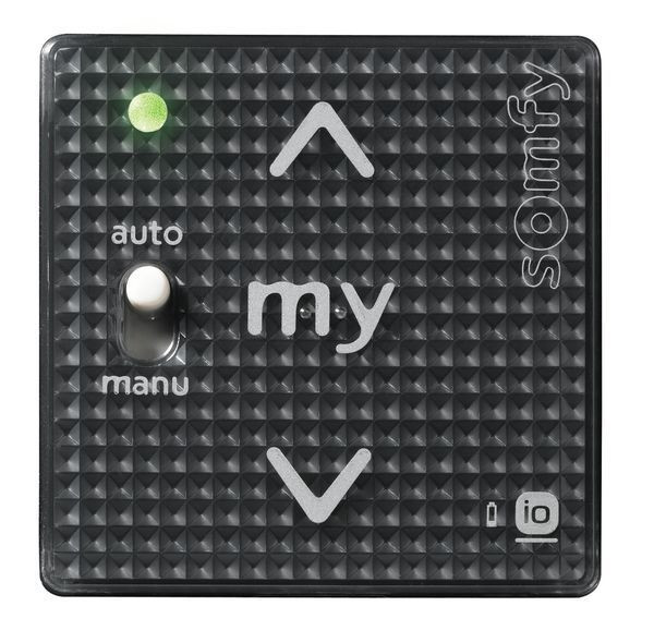Funkwandsender mit sensitiven Berührungstasten zur Ansteuerung von io-Antrieben bzw. io-Empfängern. Es kann ein Produkt bzw. eine Produktgruppe bedient werden. Wird ein Automatikbetrieb verwendet, lässt sich dieser über einen Schiebeschalter ein- und ausschalten. Ein: Der Antrieb reagiert auf alle Befehle (manuell, zentral, Zeitautomatik, Wind- und Sonnenautomatik). Aus: Der Antrieb reagiert nur auf manuelle Vor-Ort-Befehle sowie auf Sicherheitsbefehle (Wind). - Befestigungsplatte für einfache und flexible Wandmontage ohne UP-Dose - Passend zu allen Schalterprogrammen über einen 50 x 50 mm Adapterrahmen der Schalterhersteller - AUF-Taste zum Öffnen des gewählten Produktes, Einfahren der Markise bzw. Einschalten der Beleuchtung - my-Taste zum Stoppen der laufenden Bewegung oder zum Aufrufen der Lieblingsposition - AB-Taste zum Schließen gewählten Produktes, Ausfahren der Markise bzw. Ausschalten der Beleuchtung - Zentralbedienung über Schiebeschalter ein- und ausschaltbar: - Automatik-Betrieb: Der Antrieb reagiert auf alle Befehle (Vor-Ort-Befehle, Zentralbefehle, Zeitautomatik, Wind- und Sonnenautomatik) - Manueller Betrieb: Der Antrieb reagiert nur auf manuelle Vor-Ort-Befehle und Sicherheitsbefehle (Wind) - Drahtlos / batteriebetrieben Lieferumfang: Funkmodul inkl. Batterie, Befestigungsplatte für Somfy Smoove Rahmen und Befestigungsplatte für andere Schalterprogramme. Passender Adapterrahmen bitte separat bestellen. Betriebsspannung: 3 V (Batterie Typ CR2430) Betriebstemperatur: 0 GradC bis 60 GradC Umgebungsbedingungen: trockene Wohnräume Schutzart: IP 30 Funkfrequenz: 868,95 MHz Maße (BxHxT): 50 x 50 x 10 mm