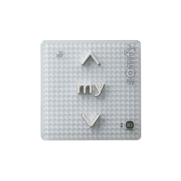 Manuelle Steuerung eines io-Funkantriebs / io-Funkempfängers oder mehrerer io-Funkantriebe / io-Funkempfänger gleichzeitig per Funk. Mit Geschwindigkeitsregelung für RS100 Rollladenantriebe: Bei langem Tastendruck fährt der Antrieb mit niedriger Geschwindigkeit und besonders leise; bei kurzem Tastendruck fährt der Antrieb mit Normalgeschwindigkeit. - Befestigungsplatte für einfache und flexible Wandmontage ohne UP-Dose - Passend zu allen Schalterprogrammen über einen 50 x 50 mm Adapterrahmen der Schalterhersteller - AUF-Taste zum Öffnen des gewählten Produktes, Einfahren der Markise bzw. Einschalten der Beleuchtung - my-Taste zum Stoppen der laufenden Bewegung oder zum Aufrufen der Lieblingsposition - AB-Taste zum Schließen gewählten Produktes, Ausfahren der Markise bzw. Ausschalten der Beleuchtung - Drahtlos / batteriebetrieben Hinweis: Für Raffstoren nicht zu empfehlen, da Lamellenwendung nicht im Tippbetrieb möglich. Lieferumfang: Funkmodul inkl. Batterie, Befestigungsplatte für Somfy Smoove Rahmen und Befestigungsplatte für andere Schalterprogramme. Passender Adapterrahmen bitte separat bestellen. Betriebsspannung: 3 V (Batterie Typ CR2032) Betriebstemperatur: 0 GradC bis 60 GradC Umgebungsbedingungen: trockene Wohnräume Schutzart: IP 30 Funkfrequenz: 868,95 MHz Maße (BxHxT): 50 x 50 x 10 mm