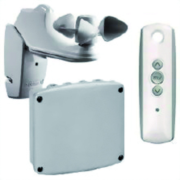 Inklusive Funkempfänger, Windfüler, Funk-Handsender und Wandhalter. Windfunksteuerungset Eolis Universal RTS für Markisen inklusive (Steuerung und Eolissensor RTS LED + Handsender Telis1Pure)