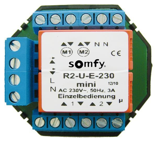 Trennrelais TR2-U-E-230 mini, ist ein Unterputz Steuerrelais zur Ansteuerung von Jalousie- und Rolladenmotoren mit mechanischen oder elektronischen Endlagenschaltern. Das Trennrelais wird dazu verwendet, um unerlaubtes Parallelschalten von Jalousie- oder Rolladenmotoren zu verhindern. An jedem TR2-U-E-230 Mini können ein oder zwei Motoren angeschlossen werden.