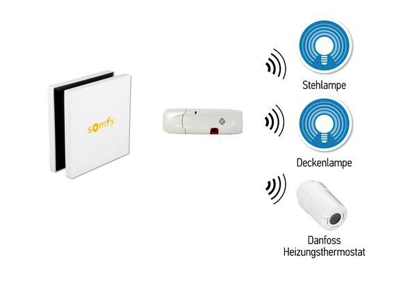 TaHoma Z-Wave USB-Modul, zur Verbindung von TaHoma Premium mit den Funkprodukten der Z-Wave Technologie. Einfache Installation durch Anschluss an die USB Buchse der TaHoma-Box und automatisches Erkennen durch TaHoma. Direkte Einbindung von Z-Wave Lichtempfängern, Zwischensteckern und Heizungsthermostaten in TaHoma. Manuelle Bedienung dieser Produkte über TaHoma. Einbindung dieser Produkte in Szenarien, Tagesabläufe, Wenn-Dann Bedingungen von TaHoma. Abfrage des aktuellen Zustands der Empfänger über TaHoma