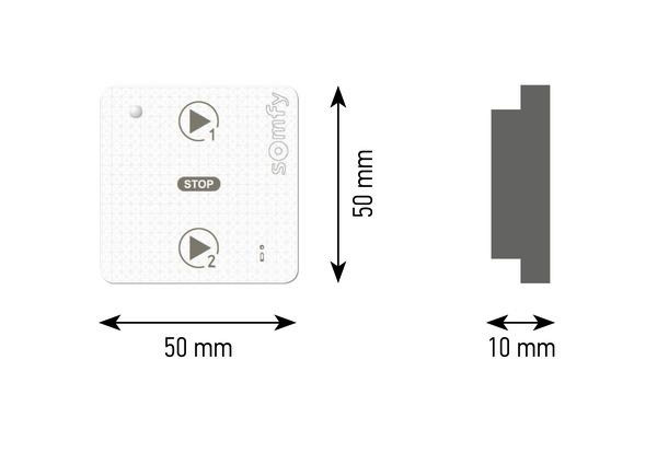Mit dem Funkwandsender können zwei in TaHoma programmierte Szenarien gestartet werden, ohne dass die TaHoma-Benutzeroberfläche geöffnet wird. - Direkte manuelle Aktivierung von zwei in TaHoma erstellten Szenarien - Aktivierung einer Notrufmeldung über E-Mail, Push-Benachrichtigung und / oder SMS - STOP-Taste zum Anhalten eines aktivierten Szenarios - Passend zu den gängigsten 50 x 50 mm Adapterrahmen der Schalterhersteller Hinweis: Passender Adapterrahmen und Befestigungsplatte für andere Schalterprogramme sind separat zu bestellen. Lieferumfang: Funkmodul inkl. Batterie, Befestigungsplatte für Somfy Smoove Rahmen. Betriebsspannung: 3 V (Batterie Typ CR2430) Betriebstemperatur: 0 GradC bis 60 GradC Umgebungsbedingungen: trockene Wohnräume Schutzart: IP 30 Funkfrequenz: 868,95 MHz Maße (BxHxT): 50 x 50 x 10 mm Das von Ihnen gewählte Produkt ist "Smart home Ready by Somfy" und lässt sich direkt in die Somfy Haussteuerung "TaHoma Switch" integrieren ? die flexible und mit zahlreichen Herstellern kompatible smarte Steuerung zur Vernetzung der Haustechnik. Die Somfy Pro App (iOS & Androide) führt Sie dabei Schritt-für-Schritt durch die Inbetriebnahme. Ein Zugriff auf die Haussteuerung ist auch in Fernwartung nach Freigabe des Endkunden möglich!