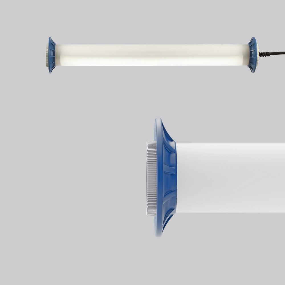 Schutzrohr Kunststoff (Polycarbonat) opal, schlagzäh. Endkappen aus Kunststoff (Polyamid) grau. Protektoren aus weichem Kunststoff an den Enden zum Schutz beim mobilen Einsatz. Homogene, weiche und blendreduzierte Ausleuchtung. Betriebsgeräte integriert. Schwere Gummischlauchzuleitung H07RN-F für hohe mechanische Belastungen mit Netzstecker. Durch Zubehör (optional) für Wand-, Decken- und Pendelmontage geeignet. Zur Leuchte ist immer ein Montagezubehör mit zu bestellen. Leuchte mit begrenzter Oberflächentemperatur nach DIN EN 60598-2-24.