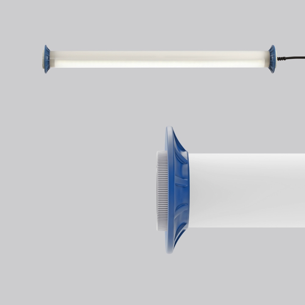 Schutzrohr Kunststoff (Polycarbonat) opal, schlagzäh. Endkappen aus Kunststoff (Polyamid) grau. Protektoren aus weichem Kunststoff an den Enden zum Schutz beim mobilen Einsatz. Homogene, weiche und blendreduzierte Ausleuchtung. Betriebsgeräte integriert. Schwere Gummischlauchzuleitung H07RN-F für hohe mechanische Belastungen mit Netzstecker. Durch Zubehör (optional) für Wand-, Decken- und Pendelmontage geeignet. Zur Leuchte ist immer ein Montagezubehör mit zu bestellen. Leuchte mit begrenzter Oberflächentemperatur nach DIN EN 60598-2-24.