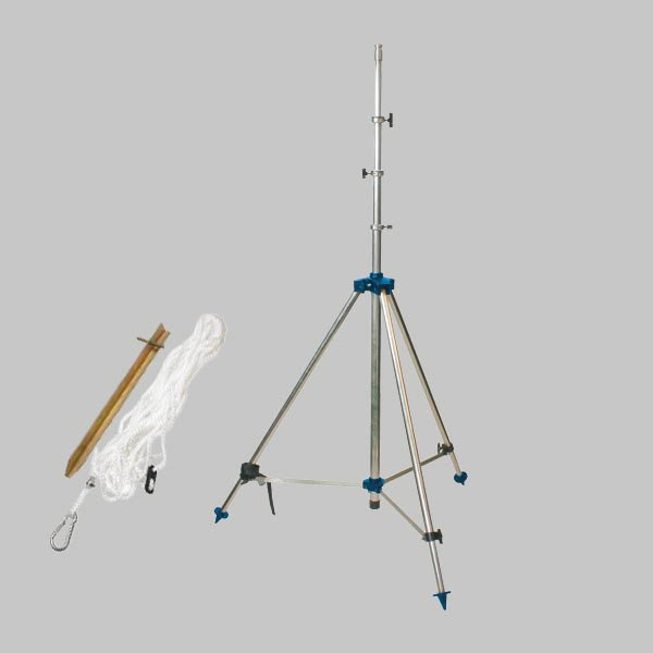 Teleskop-Stativ 'Professionell', Hmax 4,45m, Hmin 1,1m, Edelstahl, luftgedämpft für sichere und komfortable Bedienung, Füße verstellbar zum Ausgleich von Geländeunebenheiten, mit Norm-Zapfen 30 mm nach DIN 14640, inkl. Abspann-Set für Stative