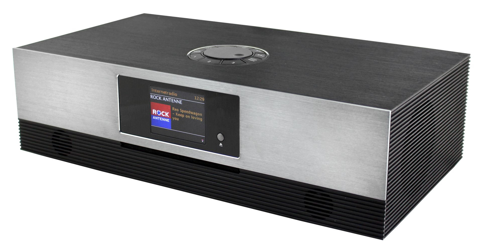 Front- und Oberseite Aluminium gebürstet, Internetradio mit WLAN 2,4/5 GHz, DAB+/UKW-RDS Radio, Slot in CD, CD-R/RW, CD-MP3, Bluetooth® EmpfangsfunktionUSB-MP3 Wiedergabe, Spotify Connect, Je 40 Festsenderspeicherplätze (3 Direktwahltasten + 37 weitere Senderspeicher), Steuerung über UNDOK APP mit Handy/Tablet, Hörbuchfunktion, 7 cm Farbdisplay, 3,5 mm Aux In Anschluss, 3,5 mm Kopfhöreranschluss, Equalizer - vorprogrammierte Klangeinstellungen, 2 Weckzeiten mit Wochenendfunktion, Einschlaf-/Schlummerfunktion, 2 Wege Lautsprecher System, Ausgangsleistung 2 x 15 W RMS, Fernbedienung, AC/DC Netzadapter 18 V/1,2 A inkl.