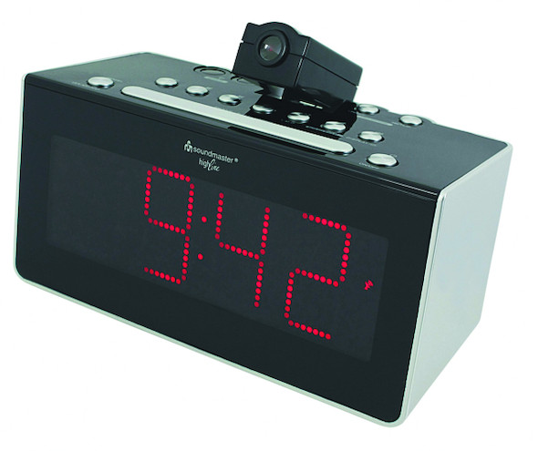 UKW Funkuhrenradio mit Projektion, Infrarotsensor und Auto-Off Display PLL- UKW Radio, Festsenderspeicher, vollautomatische Zeit- und Datumseinstellung durch DCF-77 Funksignal, 1,8? Jumbo LCD-Anzeige, mit Helligkeitsdimmer (High/Low/Auto-Off), Auto-off = nach 10 Sekunden Inaktivität schaltet sich das Display aus. Durch Aktivierung des Sensors wird das Display wieder eingeschaltet, Infrarotsensor für Radiofrequenz- und Einschlaf- und Schlummerfunktion, Dualalarm, 2 Alarmzeiten mit Wochenendfunktion und Snooze, Wecken mit Radio oder Signalton, Einschalffunktion bis 90 Min., Zeitprojektion an Wand oder Decke, Projektionsanzeige zuschaltbar und 180° drehbar, Datumanzeige durch Knopfdruck, Netzbetrieb 230V~50Hz, Gangreserve 1x CR 2032 (Batterie nicht inkl.), Maße: 19,1 x 8,0 x 9,2 cm (B x T x H)