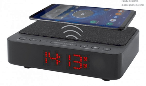 UKW-PLL Uhrenradio mit kabelloser Ladefunktion, 5 W kabellose Ladefunktion für Mobilgeräte, 10 Festsenderspeicherplätze, LED-Anzeige mit 4-stufigem Dimmer, Wecken mit Radio/Signalton, Einschlaf-/Schlummerfunktion