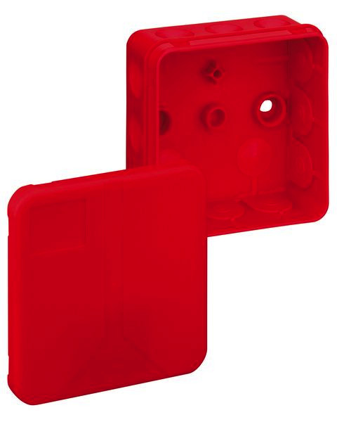 Abzweigdose, mit Schutzart IP55, Nennquerschnitt 2,5mm², Ui=400 V AC, zertifiziert durch VDE (DIN EN 60670-1/-22 (VDE 0606-1/-22)), selbstdichtende, weiche Einführungsmembranen, Dichtbereich 2-14mm, (2 rückseitig, 12 seitlich), innenliegende Befestigungsstellen, für Standardinstallationen im Innenbereich, rot, ohne Klemmen, zur Kennzeichnung von Stromkreisen der Sicherheitsbeleuchtung