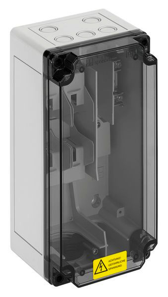 Anschlussklemmen Abgang: Schellenanschluss (2x 2,5-50mm² CU), Deckel transparent