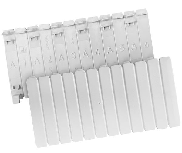 Abdeckstreifen, zum Verschließen nicht genutzter Automatenplätze, trennbar, grau, Breite 108mm für 6 Teilungseinheiten