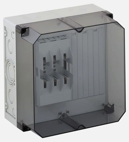 Sicherungsgehäuse AKi-SS 21, NH00-Reitersicherungsgehäuse (160 A), 5-pol. 250 A, mit transparentem Deckel, Reitersicherungsunterteil, 70 mm², Abgang oben, mit Anschlussklemmen 70 mm² und PE-Abgangsklemmen 35 mm², N-Abgangsklemmen 35 mm² 1 x NH 00 auf Samm