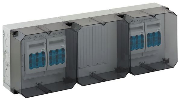 | Kurzbeschreibung | Reiterlasttrennergehäuse, transparent, Schutzart IP54/IP65, Schlagfestigkeit IK08, Schutzklasse II, Bemessungsspannung 690V AC, halogenfrei |