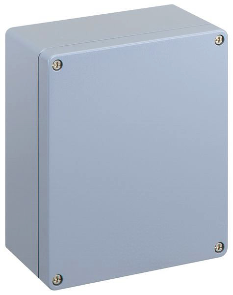 Leergehäuse, mit Schutzart IP66, Aluminium pulverlackbeschichtet, innenliegende Befestigungsstellen, für Installationen im industriellen Umfeld und geschütztem Außenbereich, Kasten: Aluminium pulverlackbeschichtet, Deckel: Aluminium pulverlackbeschichtet, silbergrau, glatte Seitenwände
