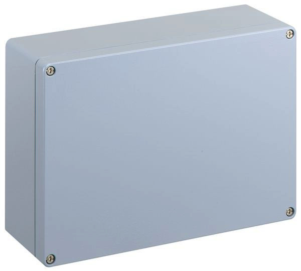 Leergehäuse, mit Schutzart IP66, Aluminium pulverlackbeschichtet, innenliegende Befestigungsstellen, für Installationen im industriellen Umfeld und geschütztem Außenbereich, Kasten: Aluminium pulverlackbeschichtet, Deckel: Aluminium pulverlackbeschichtet, silbergrau, glatte Seitenwände