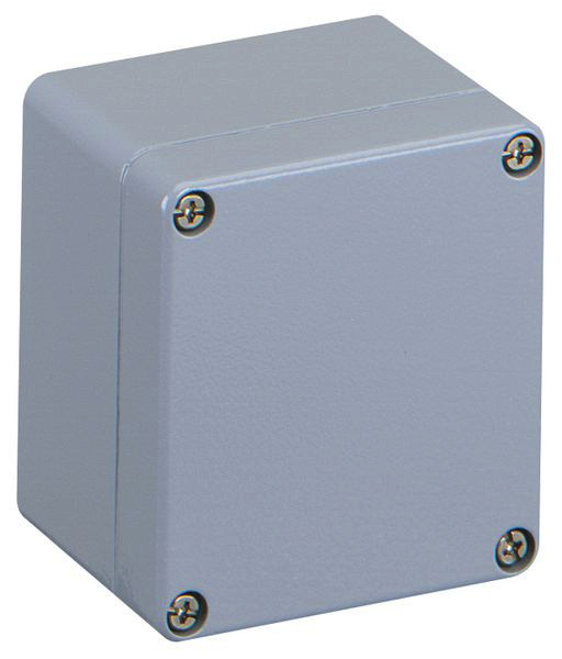Leergehäuse, mit Schutzart IP66, Aluminium pulverlackbeschichtet, innenliegende Befestigungsstellen, für Installationen im industriellen Umfeld und geschütztem Außenbereich, Kasten: Aluminium pulverlackbeschichtet, Deckel: Aluminium pulverlackbeschichtet, silbergrau, glatte Seitenwände