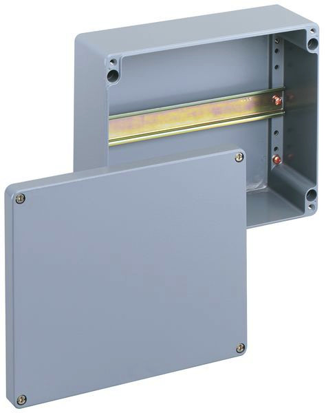 Aluminium-Gehäuse mit Reihenklemmen - Industrie Qualität - pulverbeschichtet RAL 7001 Reihenklemmengehäuse, mit Schutzart IP66, Nennquerschnitt 4mm², Ui=400V AC, Aluminium pulverlackbeschichtet, innenliegende Befestigungsstellen, für Installationen im industriellen Umfeld und geschütztem Außenbereich, ohne Klemmen, mit Tragschiene NS35