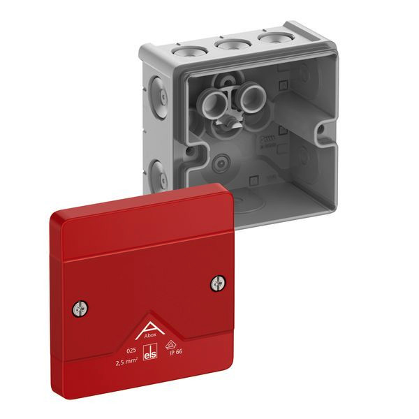Abzweigkasten, mit Schutzart IP66, Nennquerschnitt 2,5mm², zertifiziert durch VDE (DIN EN 60670-1/-22 (VDE 0606-1/-22)), DLG (Ammoniakbeständigkeit), selbstdichtende, weiche Einführungsmembranen, M16/M20, Dichtbereich 4-16mm, (1 rückseitig, 8 seitlich), innenliegende Befestigungsstellen, für Standardinstallationen im Innenbereich und geschütztem Außenbereich, grau, Ui=1000 V AC, mit rotem Deckel, ohne Klemmen, zur Kennzeichnung von Stromkreisen der Sicherheitsbeleuchtung