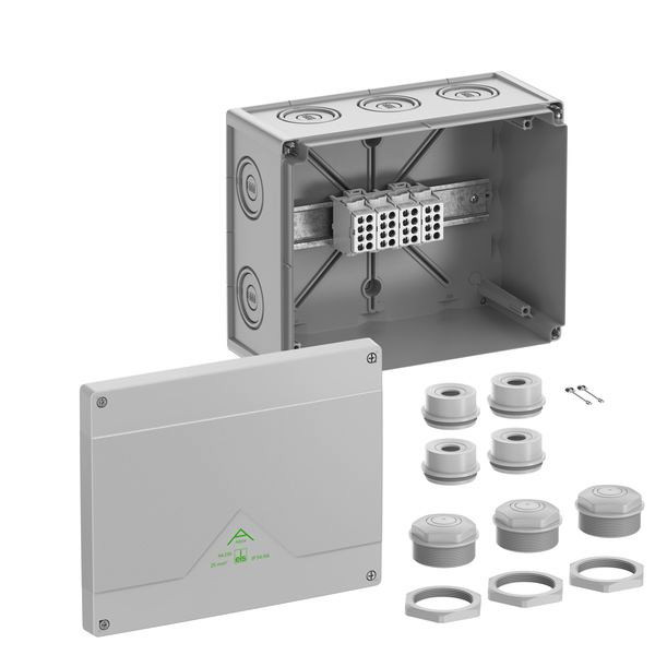 | Kurzbeschreibung | Junction box, Type of protection IP54/IP66 , max. 25², Impact strength IK07, Protection class II, Ui 690V AC, Ui 690V DC, DLG, Halogen free |