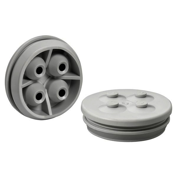 Doppelmembranstutzen, IP66, mit zwei Dichtungsmembranen, geschlossen, max. vier Leitungseinführungen für Steuerleitungen, thermoplastisches Elastomer (TPE), für Wandstärken 1,5-4,5mm, grau, Dichtbereich 3,5-6mm pro Einführung