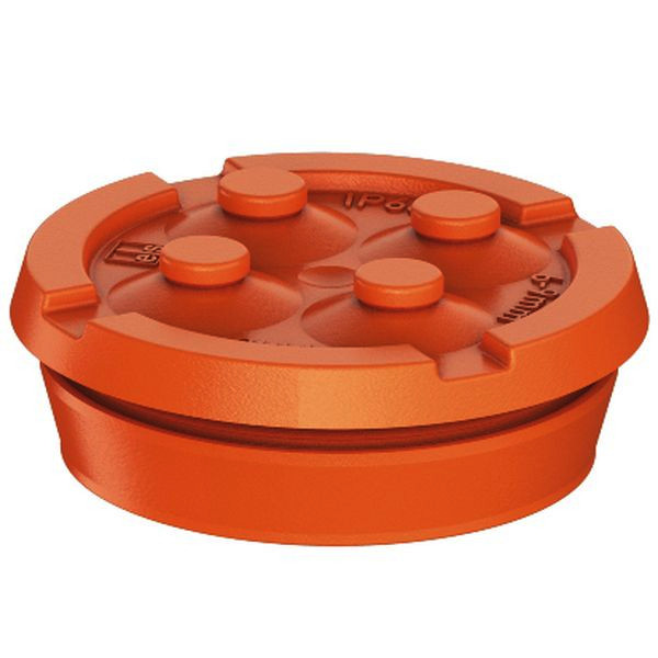 Doppelmembranstutzen, IP66, mit zwei Dichtungsmembranen, geschlossen, max. vier Leitungseinführungen für Steuerleitungen, thermoplastisches Elastomer (TPE), für Wandstärken 1,5-4,5mm, orange, Dichtbereich 6-9mm pro Einführung