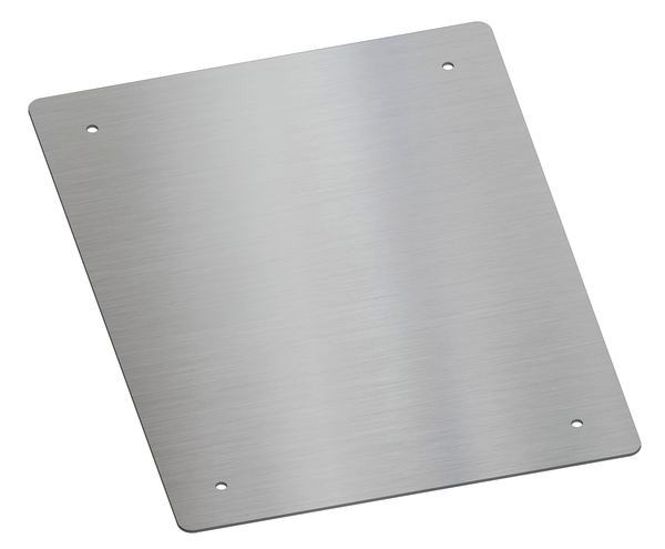 Designplatte aus Edelstahl V2A, 1 Stück, für die rückseitige Abdeckung der Gehäuse GEOS 3040 bei Nutzung des Mastschellen-Sets GEOS MSS