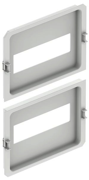 Berührungsschutzmodule zum werkzeuglosen Einbau in den Rahmen von GEOS-Schaltschränken, Kunststoff grau ähnlich RAL 7035, für GEOS-S 3040-18/22, 18 TE, 2-reihig. Set bestehend 2 x Artikel 72208701