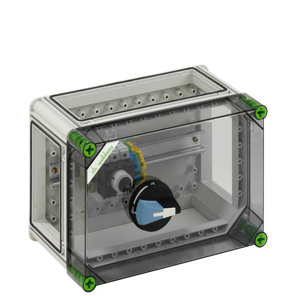 Lasttrennschaltergehäuse mit externer Betätigung, abschließbar, 1 x Lasttrennschalter 63A, 3-polig schaltend, Käfigklemme 2,5-35mm², für CU-Leiter, PE/N-Klemme 16mm², 3 x Gehäuseverbinder (GGV), mit transparentem Deckel