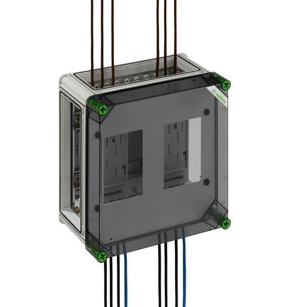 Zählergehäuse, mit 2 montierten BKE-I für elektronische Haushaltszähler, inkl. Anschlussleitungen 1000mm, für Zu- und Abgang, mit Plombierset, mit Befestigungsschrauben, 3 x Gehäuseverbinder (GGV), mit transparentem Deckel