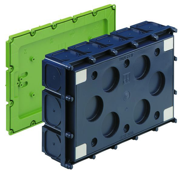 16 Einführungen bis 47,5 mm Ø (M 50) Einbaukasten, geeignet zur Aufnahme einer 40-poligen Telefon-Anschlussleiste, als Telefon-Durchgangskasten nach DIN 47614-615, oder als Unterverteilung in Kombination mit dem UP 015 (1-reihig, 15 TE), mit Schutzart IP30, Bemessungsisolationsspannung: 400V AC, halogenfrei, für Spelsberg HM-UNI (97929901), Magnet- oder Nagelbefestigung, Membran zur Lochung, Dichtbereich M16-M50, stützholmfähig