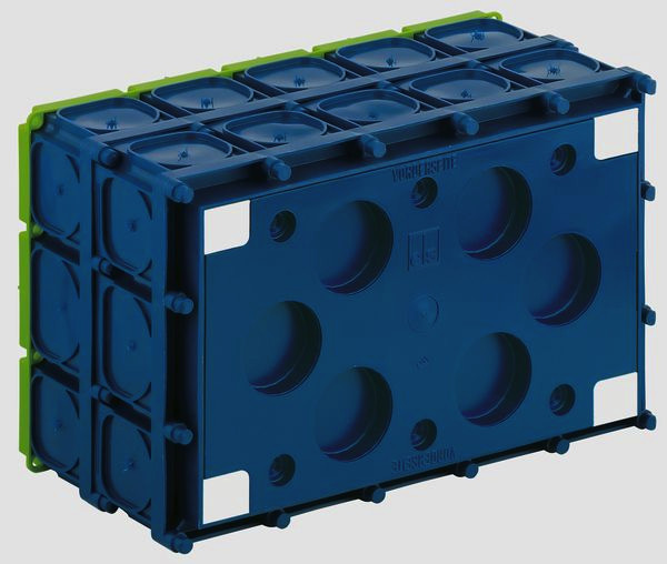 auch für Gegenschalung und Magnetbefestigung Universelles Einbaugehäuse, geeignet zur Aufnahme einer 40-poligen Telefon-Anschlussleiste, als Telefon-Durchgangskasten nach DIN 47614-615, oder als Unterverteilung in Kombination mit dem UP 015 (1-reihig, 15 TE), mit Schutzart IP30, Bemessungsisolationsspannung: 400V AC, halogenfrei, ohne Fermacell(R)-Platte, Lampenleistung max. 50W / LED 40W, für Spelsberg HM-UNI (97929901), Magnet- oder Nagelbefestigung, Membran zur Lochung, Dichtbereich M16-M50, stützholmfähig