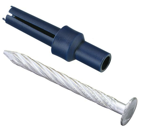 Befestigungsmittel für Stahlschalung, Spreiznagel, Aluminium 40mm, mit Kunststoffdübel zur Befestigung der Dosen auf der Stahlschalung (Bohrung 5,5mm), hervorragend bewährt bei Tunnelschalung
