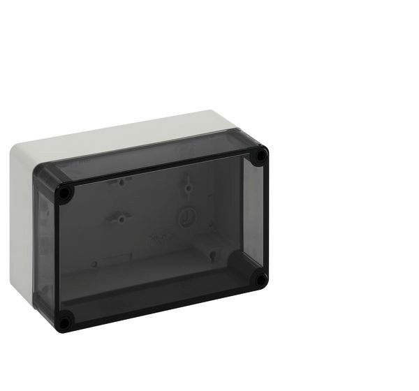 m = metrisch, o = ohne Vorprägung Leergehäuse, mit Schutzart IP66, Polystyrol, Ui=690V AC, Ui=1000V DC, innenliegende Befestigungsstellen, für Standardinstallationen im Innenbereich, Kasten: Polystyrol, grau, Deckel: Polycarbonat, transparent, glatte Seitenwände