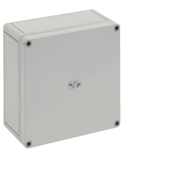 m = metrisch, o = ohne Vorprägung Leergehäuse, mit Schutzart IP66, Polystyrol, Ui=690V AC, Ui=1000V DC, innenliegende Befestigungsstellen, für Standardinstallationen im Innenbereich, Kasten: Polystyrol, grau, Deckel: Polystyrol, grau, glatte Seitenwände