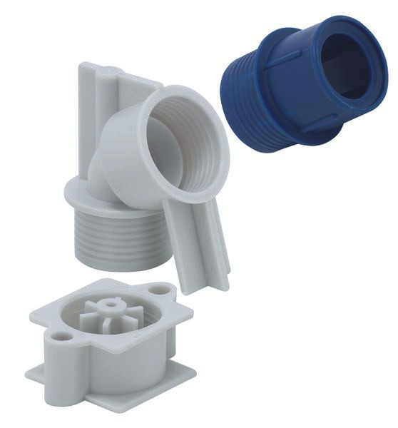 Rohrkapsel/Rohrkapselkrümmer für Betoneinbau, 3-teilig, bestehend aus Rohrkapsel mit Unterteil und Rohrkrümmer 30°