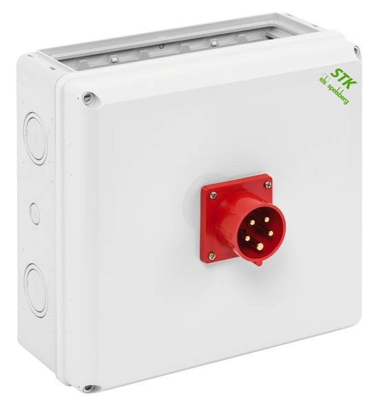 Steckdosenkombination, mit Schutzart IP44, Zusatzgehäuse, für eine einfache Kombination mit STK-Steckdosenkombinationen oder AK Air Verteilern mit Flanschöffnungen (AK-F), inkl. Kombinationsflansch AK3 KFL, ohne Anbauflansch, bestückt mit: