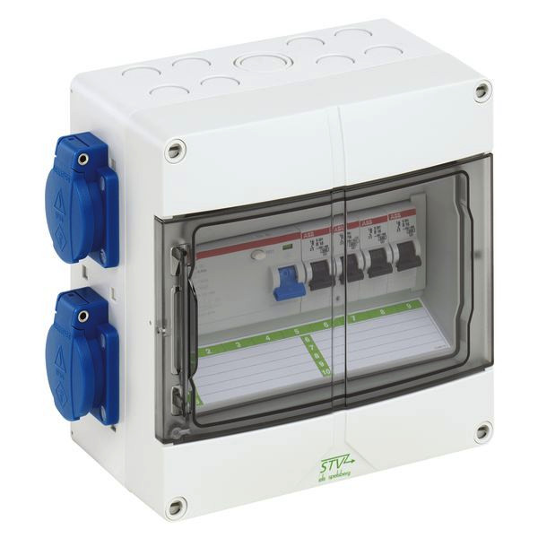 Steckdosenkombination, mit Schutzart IP44, anschlussfertig, nach EN 61439-3, hohe mechanische Belastbarkeit, temperaturunempfindlich, kombinierbar