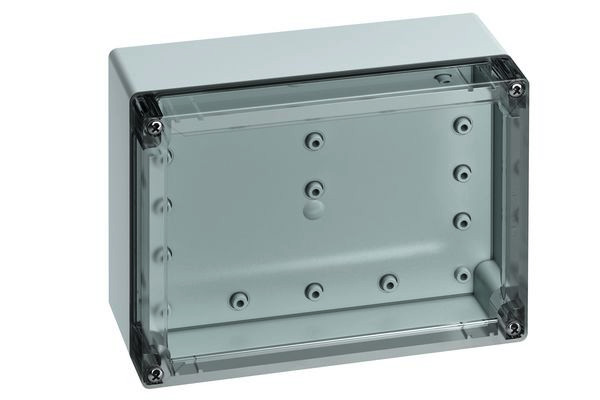 Leergehäuse, mit Schutzart IP66/IP67, ABS, Ui=690V AC, Ui=1000V DC, innenliegende Befestigungsstellen, für Standardinstallationen im Innenbereich, mit Schnellverschluss, Kasten: ABS, grau, Deckel: Polycarbonat, transparent, glatte Seitenwände
