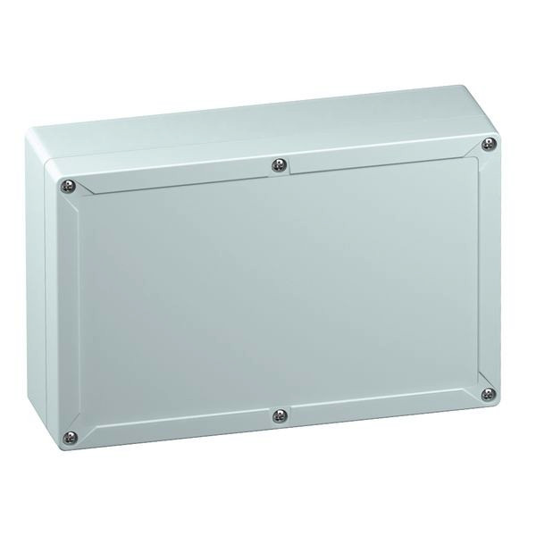 Leergehäuse, mit Schutzart IP66/IP67, ABS, Ui=690V AC, Ui=1000V DC, innenliegende Befestigungsstellen, für Standardinstallationen im Innenbereich, mit Schnellverschluss, Kasten: ABS, grau, Deckel: ABS, grau, glatte Seitenwände