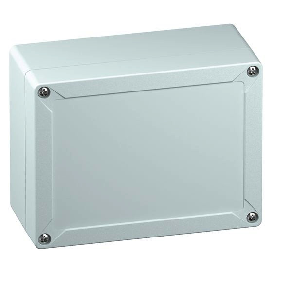 Leergehäuse, mit Schutzart IP66/IP67, Polycarbonat, zertifiziert durch UL (UL 50 & CSA 22.2 No. 94.1-07, UL 50E & CSA C22.2 No. 94.2-07), DLG (Ammoniakbeständigkeit), Ui=690V AC, Ui=1000V DC, innenliegende Befestigungsstellen, für Installationen im industriellen Umfeld und geschütztem Außenbereich, mit Schnellverschluss, Kasten: Polycarbonat, grau, Deckel: Polycarbonat, grau, glatte Seitenwände