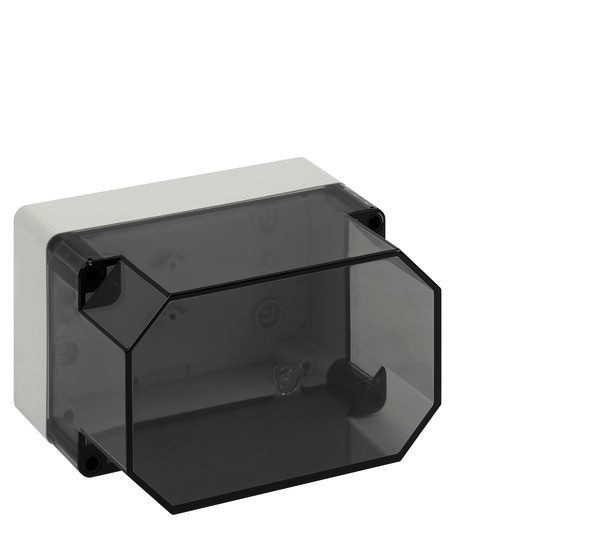 m = metrisch, o = ohne Vorprägung Leergehäuse, mit Schutzart IP66, Polystyrol, Ui=690V AC, Ui=1000V DC, innenliegende Befestigungsstellen, für Standardinstallationen im Innenbereich, Kasten: Polystyrol, grau, Deckel: Polycarbonat, transparent, glatte Seitenwände