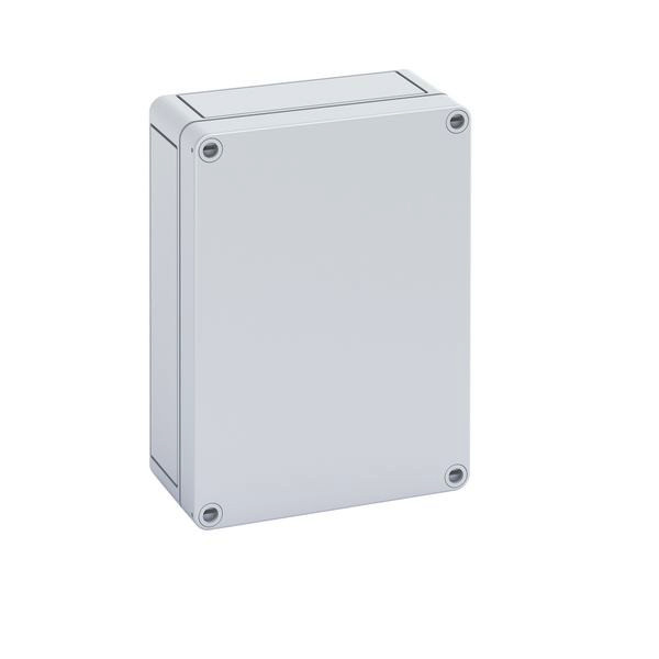 Leergehäuse, mit Schutzart IP66, Polystyrol, Ui=690V AC, Ui=1000V DC, innenliegende Befestigungsstellen, für Standardinstallationen im Innenbereich, Kasten: Polystyrol, grau, Deckel: Polystyrol, grau, glatte Seitenwände