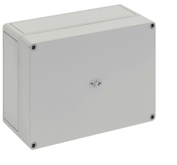 m = metrisch, o = ohne Vorprägung Leergehäuse, mit Schutzart IP66, Polystyrol, Ui=690V AC, Ui=1000V DC, innenliegende Befestigungsstellen, für Standardinstallationen im Innenbereich, Kasten: Polystyrol, grau, Deckel: Polystyrol, grau, glatte Seitenwände