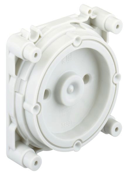 für Magnetbefestigung, Magnetloch ist später zu verputzen, Höhe 21 mm Blindsockel, Basis zur Abstützung von IBT-Dosen und Kästen bei Gegenschalung in Verbindung mit Stützholmen, kombinierbar durch Rastverbindung, bei Montage der Blindsockel mit Nagel-, Magnet-, Klebe-Technik ist ein späteres Verputzen der Befestigungsstellen erforderlich, Zur Montage: 1. der Dosen U 71 bei Gegenschalung, im 71mm Abstand. Zusätzlich bei extremer Belastung mit Verbundbrille kombinierbar. 2. der Einbaukasten K3 EK und K4 EK bei Gegenschalung mit 2 bzw. 4 Sockeln und je 3 Stützholmen in den Ecken, Höhe 21mm für Magnetbefestigung, Magnetloch ist später zu verputzen